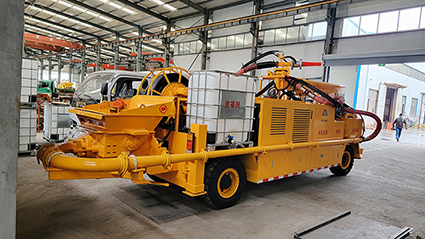 5.在正常噴射施工中,電動機驅(qū)動它馳騁在工地上。即便在電力中斷的情況下,柴油機也能短暫地驅(qū)動泵送系統(tǒng),讓噴射機械手以較慢的速度進行各種操作,確保施工的連續(xù)性。