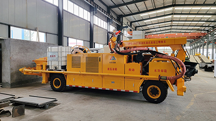 3.速凝劑添加系統(tǒng)則采用軟管泵,流量大、壽命長、可靠性好,保證了混凝土的質(zhì)量。根據(jù)需要調(diào)節(jié)比例,外加劑摻量和混凝土泵輸送量均可通過工控屏或遙控器實時監(jiān)控和調(diào)節(jié),實現(xiàn)準確控制。