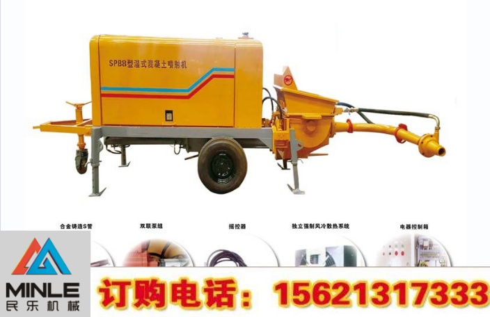 干噴機是將水泥、砂、石子在干燥狀態下攪拌均勻,用于壓縮空氣將物料送至噴嘴,并與壓力水混合后進行噴灌的,此法須由熟練人員操作,粒徑不宜過大,水泥用量也大,但是因為速度大,粉塵污染及回彈情況嚴重,因此在使用上受限。